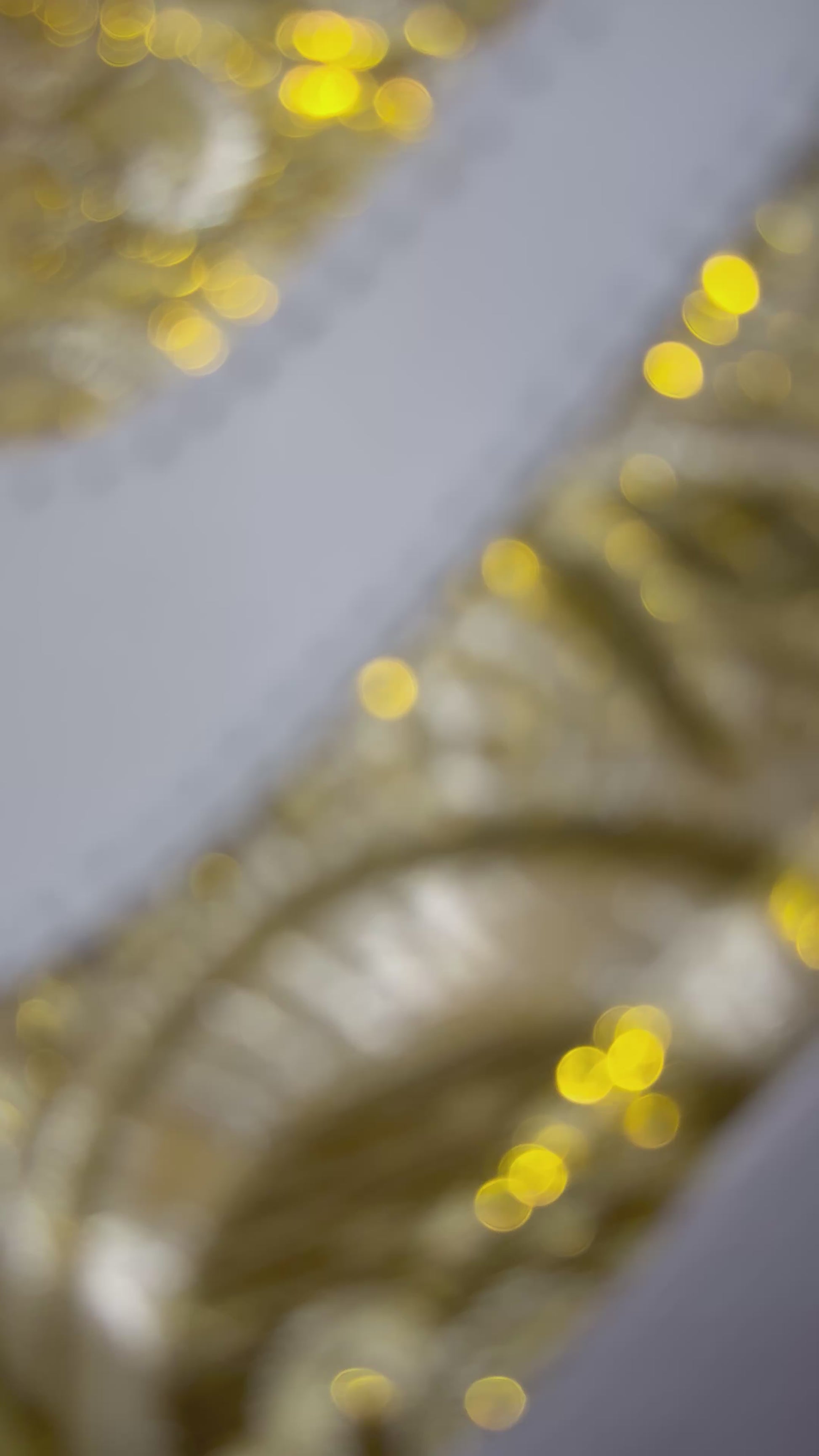 Le contraste entre le swoosh blanc et les détails dorés met en valeur le travail artisanal réalisé avec précision.